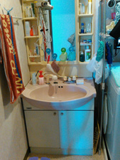 ユニットバス:TOTO サザナ(1216サイズ、Sタイプ) 洗面化粧台:LIXIL ピアラ(間口750) 天井・壁 壁紙:サンゲツ AA級 床クッションフロア:サンゲツ HMシリーズ |