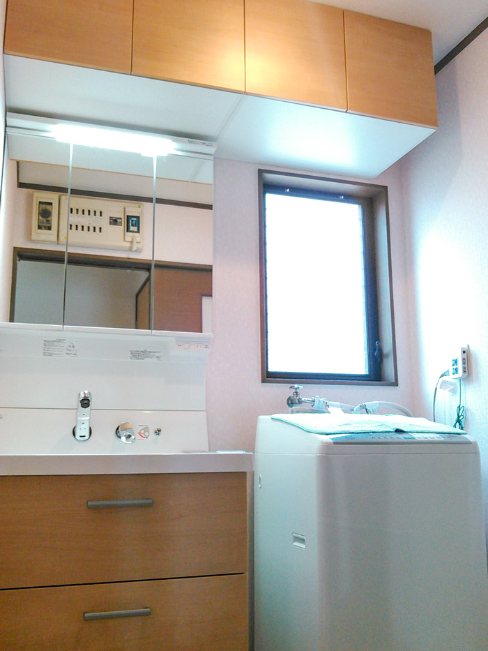 以前より暖かく快適になったと喜んでくださり、嬉しいです。洗面所のリフォームも加わり、明るく温かみのある空間になりました。