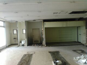 元々コンビニである建物を改装して動物病院にする工事でした。給水・排水管の新設や電気工事が一番手間がかかった場所ですね。床が土間ですので、給水・排水管を入れるためにコンクリートを切断・粉砕して給水・排水管を新設しました。